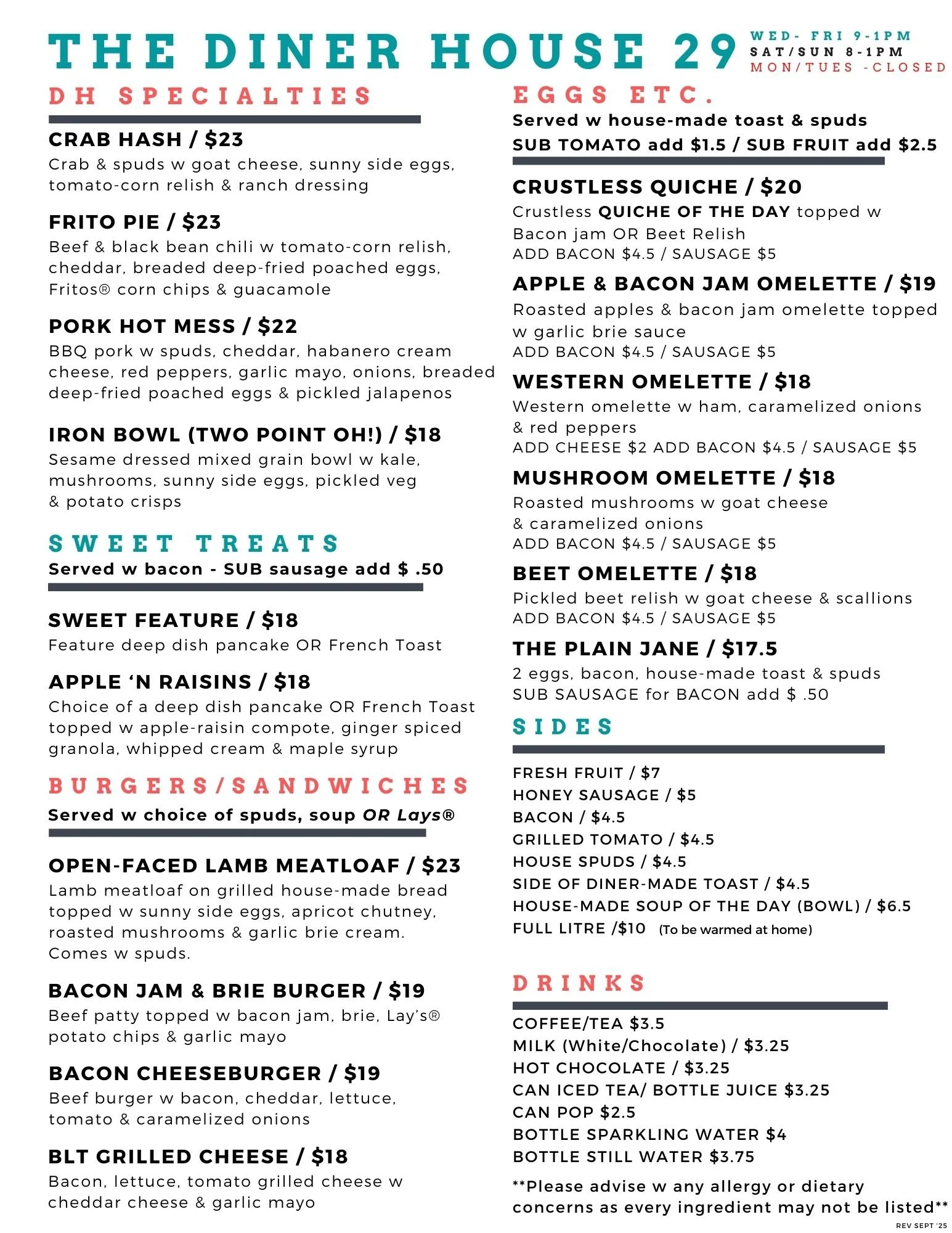 PLEASE NOTE: We tweak our menu every 3-4 months so please check back often!